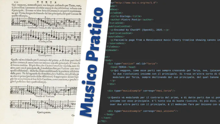 - Digital edition and translation (German/English) of the two treatises including their music examples. The digital text and music encodings will be created according to the current TEI and MEI standards and presented on customized online infrastructure. All results will be made available open access via this digital platform. Commentaries and a glossary will position Pontio in the musical, music-theoretical, aesthetic and cultural context of his time.